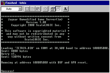 Success! The game has been uploaded to your trusty Jaguar.