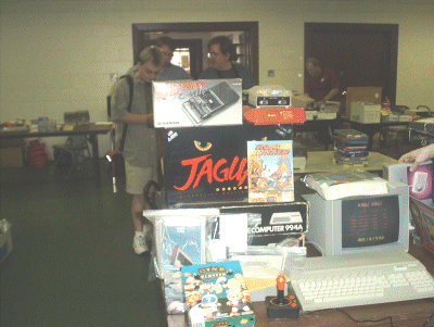 | 9/21/00: NEW JAGUAR PLAYER DIRECTORY:A new directory of active Jaguar users is on the horizon. On it you will find the name, city, state, email, and ICQ number of your fellow Jaguar enthusiasts. This will allow you to contact your fellow Jaguar fans for networking or general conversation. The list is being compiled by Randy Femrite with help from Dan@AVC. Randy described the Directory by email saying, “Personally, I feel it’s important for a community to know how many members there are and how to contact them. I once read ‘If you don’t grow, you die.’ I think once The List is posted adding to it will be of primary importance. I’m sure their are other Jaggers out there who don’t know about the community-I didn’t until March of this year! I feel this Directory will be a good foundation from which the Jaguar community can grow.”As of yet, there is no word on where the directory will be posted. To get your information in, please contact Randy Femrite. Atari Computer Enthusiasts of Ohio ![]() Held at a community center in Columbus, Ohio ![]() A Nice crowd, a load of ST stuff on the center table. ![]() In the far left corner is a load of ST computers for sale. In the front left was ST software for 10 for $1! ![]() A closer look at some of the Atari ST computers for sale. ![]() Play Star Raiders on one of the computers near the far wall. ![]() This guy came in a little later from Cincinnati. He brought a large selection of 2600 and 8 bit cartridges. I bought many 8 bit cartridges from him last year. ![]() …and he brought more. ![]() Yes, buried in all that other Atari stuff is a new in box Jaguar. ![]() A lot of Atari 8 bit stuff. An Atari 600xl on the right. ![]() Now the tables are beginning to clear. ![]() Games were projected on the screen at the top, right. ![]() Atari ST software on the bottom, right. ![]() Joysticks, software, and other goodies. 9/4/00: BATTLE SPHERE IS UP FOR AUCTION:ScatoLOGIC has put up for auction more copies of Battle Sphere at www.atari.net. Go there now for details and as always supplies are very limited. ScatoLogic has put up 10 copies at one time and plans on selling more. By using Atari.net, it is hoped that those hardcore Jaguar fans will be able to get the game. Previously, Scatologic ran out of the initial run of Battle Sphere due to the news of the game’s pending release being posted on Slashdot.com9/4/00: GOAT STORE SETS UP SHOP:Games Of All Types (G.O.A.T.) has recently set up shop at www.goatstore.com This well designed site offers a whole host of offerings from Atari, Nintendo, Sega and other console systems. For the Atari, the GOAT Store offers a good priced selection of Atari 2600, 7800, Jaguar, and Lynx. In addition to shopping, you can download and play the latest GOAT Game and check out the latest commentary named “GOAT Words.” Perhaps the most unique thing the GOAT Store offers is their own produced and developed products such as a Jaguar Jamma Joystick (an arcade quality joystick at $69.90), and promised to come soon, a Jaguar Dust Cover (estimated price of $9.90), and a black box to connect your Jaguar joystick to your P.C. (estimated price of $24.90). The people behind Goat Store, were recently part of Team 13, a company affiliated with Dark Knight Games. According to recent posts on Jaguar Interactive by Dan, a GOAT Team member, GOAT is no longer affiliated with Dark Knight Games in any way. This news update is in no way an endorsement of the products or site described, but it sure looks promising.8/15/00: JUGS IS NOW AVAILABLE TO ORDER:In a surprise move, ScatoLOGIC, the development team behind the wildly popular Battle Sphere for the Atari Jaguar, announced that the Jaguar Server JUGS is now available. JUGS allows you to download, load, and play game files off the internet via a special cable which connects the pc and your trusty Jaguar through the use of the Jaglink networking cable. The possibilities for this technology is limitless and could potentially spur many hobby developers to cheaply and easily release new games for the Jaguar over the internet. Already there are demos, unreleased games, and Battle Sphere patches ready to download. Previously the only way to play these unreleased games was to either have an expensive Jaguar Development Kit or to have your Jaguar hacked up to replace a chip inside.JUGS works by using special code already embedded into the previously released Battle Sphere game and requires the following items: a Jaguar, a pc with an available serial port, Jaglink networking cable, the provided JUGS cable, a copy of Battle Sphere, and the provided JUGS software. You can order JUGS (which includes software and the cable) from buyjugs.com for only $29.95 plus shipping.The announcement of JUGS was made on Judicial Interactive with the first post being a large “J”, the second post being a large “U”, and so on. What was a shock to everyone was that Scatologic was the team behind JUGS and that the JUGS code was secretly embedded into Battle Sphere. Previously, Thunderbird, a member of ScatoLOGIC, would only say that he was play testing JUGS for an unknown developer and would refuse to disclose many details. However, he now states that was merely a joke.I congratulate ScatoLOGIC for such a secretive and promising development.8/15/00: BATTLE SPHERE SECOND RUN IS READY (Update):Apparently a small second run of Battle Sphere carts is ready for sale! Fans have been scrambling for this game ever since Scatologic ran out on the first run last March. At this time it is unclear how many carts are available or how the carts will be sold, but fans on Jaguar Interactive have suggested selling the games using dutch auction on ebay, email orders, or previous customer lists. So if you haven’t gotten this game yet, check out www.battlesphere.com for details. Much praise goes to Scatologic who not only produced this game after the commercial death of the Jaguar, but who stuck through for a second run t