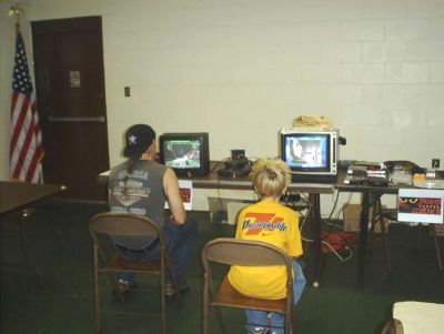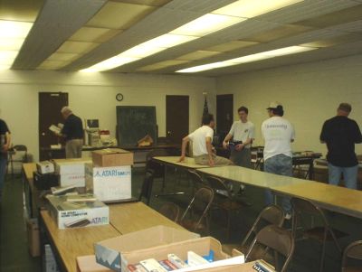 See the pictures below:  A group of the Atari Computer Enthusiasts of Ohio members including Don Bowlin who hosts the Atari Delphi Forum.  People playing BattleSphere and Vid Grid. Games from Songbird displayed on the right.  People put out products to sell. I love to see bins of Atari stuff! Atari – Hasbro Interactive Games were played using the projector. Atari 800xl stuff for sale. More players, more games. Space War 2000 being played on the left. Atarisoft software for the PC for sale. Atari commercials being played on the laptop.